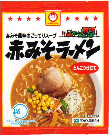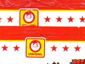 中央上部のマルちゃんマークは絵柄全体の枠から少し突き出ている格好ですが、その