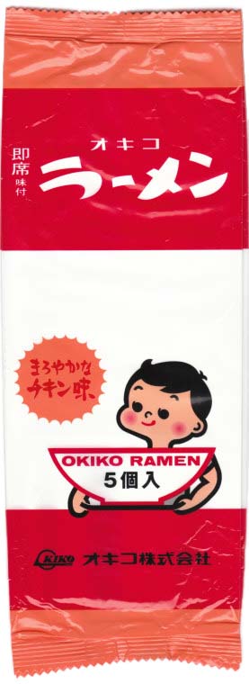 | 天神にある「わしたショップ」に久しぶりに寄ってみたら、なんとオキコラーメンがミニラーメンとして復刻されていました。パッケージは五個入りのタワー型で一般的なミニラーメンの仕様です。デザインはオリジナルからそっくり移植されたという感じですが、丼部分は透明窓にはなっていません。しかし中の個包装はかなり忠実なミニチュアになっており、透明窓もちゃんと作ってあるのが嬉しいです。今度はお湯をかけるだけでも作れるようになっています。 |