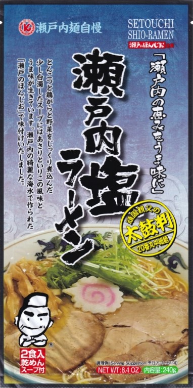 このシリーズのうち「瀬戸内塩ラーメン」だけ旧パッケージの包材が余っていたらしく、裏面の作りかた説明が麺別ゆで方式のままでした。2022年ころにようやく即席式に変更されましたが、その際麺の長さが20cmくらいに改められ、パッケージの縦横比も変わりました。