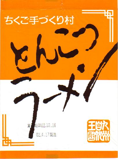 「味噌ラーメン」のパケ裏の製造者名表記は、ただ「九州自然王国 ちくご手づくり村」だけだったんですが、この「とんこつラーメン」では「株式会社栗木商店」も並列表記してあります。