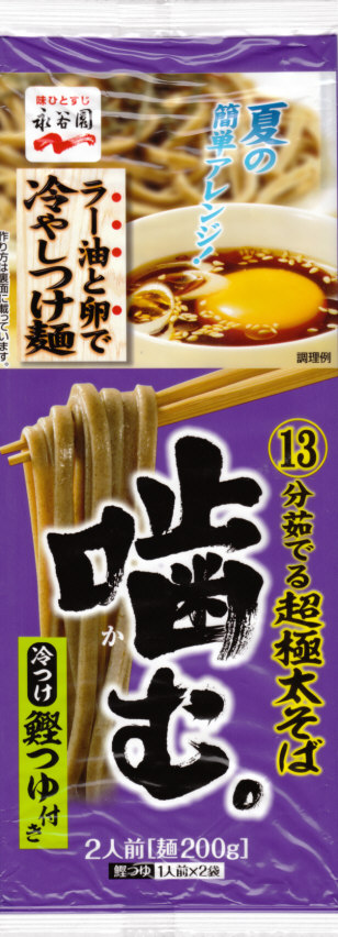 永谷園 13分茹でる超極太そば・噛む。冷つけ鰹つゆ付き08 ラー油と卵で冷やしつけ麺